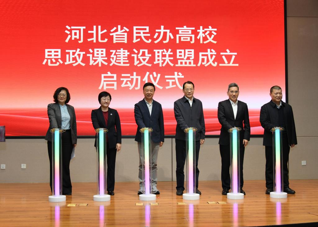 会上举行了河北省民办高校思政课建设联盟成立启动仪式,李轶、杨晓慧、艾四林、李晓华、蔡杭州、李英等专家领导在全场的热烈掌声中启动了象征联盟成立的五彩球柱。