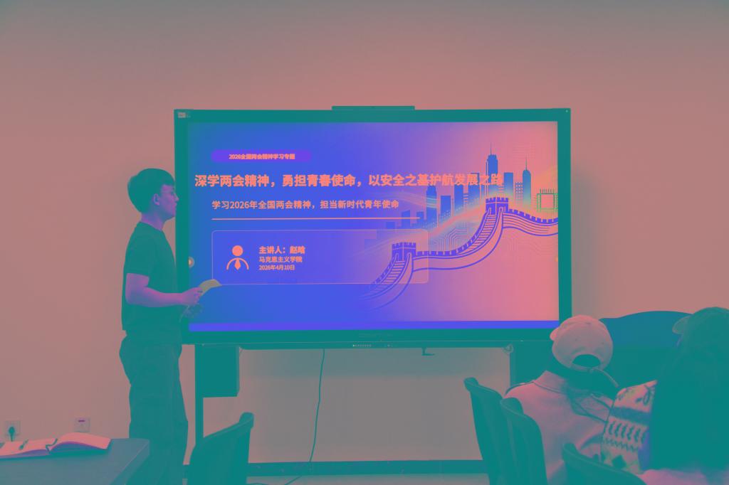 孟珺仪同学围绕全国两会精神与总体国家安全观,解读新时代青年在维护国家安全中的使命担当与实践路径;王苏畅同学结合两会关于统筹发展和安全的部署要求,阐明其对“十五五”时期高质量发展的战略支撑作用;平静同学立足两会对青年发展的相关论述,分析统筹发展和安全背景下青年的时代机遇;赵晗同学结合两会精神,号召同学们将个人理想融入国家发展大局,以安全之基护航发展之路,以青春之我建设青春之国家。