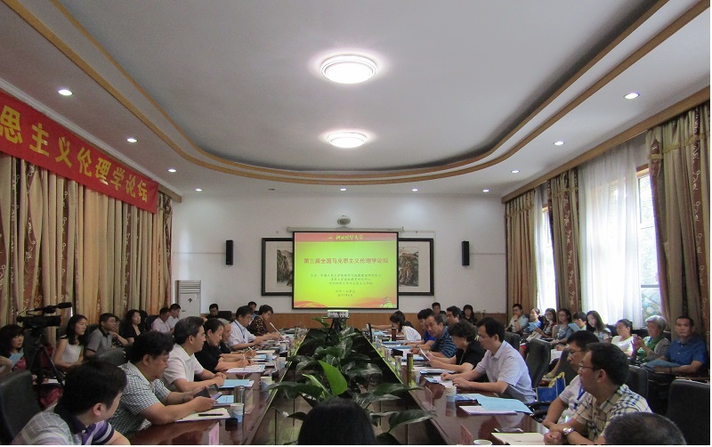 共同主办,来自省内外15家高校50余位专家学者与会。中国人民大学宋希仁、安启念、葛晨虹,我校王莹,山西师范大学卫建国等著名学者作主题报告,其他与会学者也踊跃发言。大家围绕马克思伦理思想、马克思主义伦理学研究前沿问题、中国特色社会主义伦理、国家治理与道德建设等问题展开了热烈研讨。